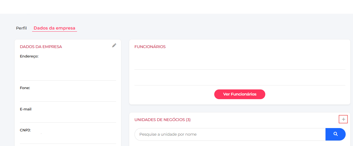 1. Na página inicial, clique em Perfil da Empresa> Dados da empresa.